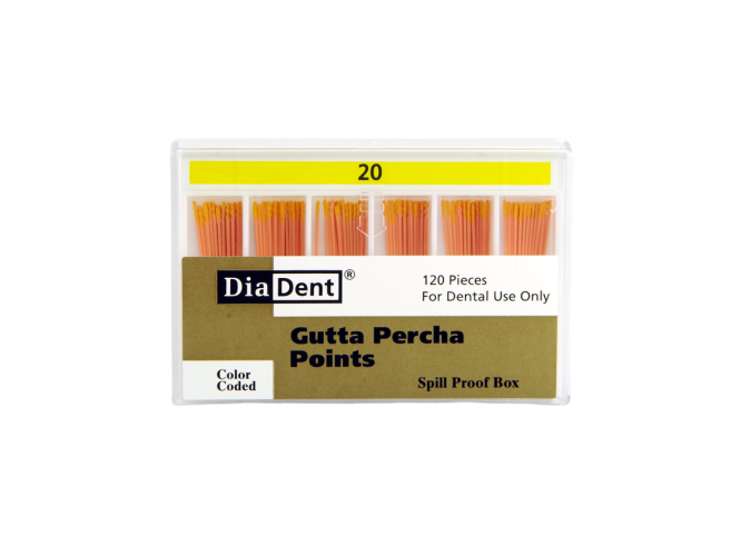 Гуттаперчевые штифты № 20 DiaDent применяются при лечении периодонтита и пульпита различной природы. С их помощью надежно запечатываются зубные каналы в комбинации с эндодонтическими силерами.